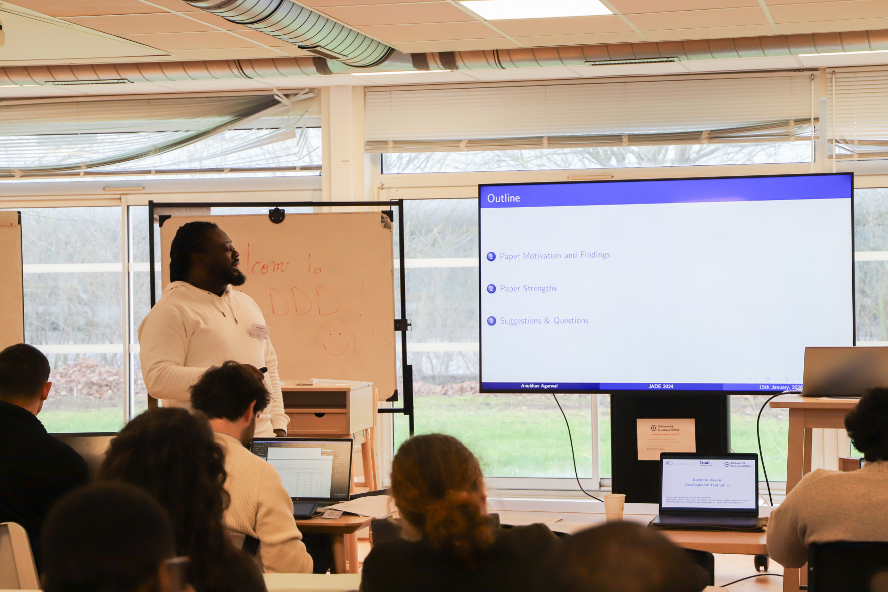 Nous avons eu le plaisir d'assister à 14 présentations de doctorantes et doctorants issus de 10 institutions différentes autour de thématiques clés de l’économie du développement (firmes, agriculture, aide au développement, environnement, santé, normes sociales, genre, finances publiques).