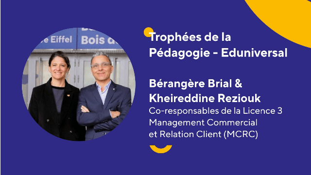 Les Trophées de la Pédagogie, organisés par Eduniversal, récompensent depuis 2012 les meilleurs gestionnaires de Licences et Bachelors. C’est grâce au retour de satisfaction de leurs étudiants sur leur travail de pédagogue et de gestionnaire, ainsi que sur celui de l'équipe pédagogique, que, le 19 novembre 2025, la Licence 3 Management Commercial et Relation Client (MCRC) s'est vue récompensée de la 8ème place, toutes disciplines confondues !